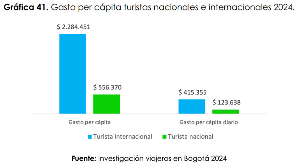- En 2023, el gasto per cápita de un turista internacional en la ciudad fue de $4.114.655 COP